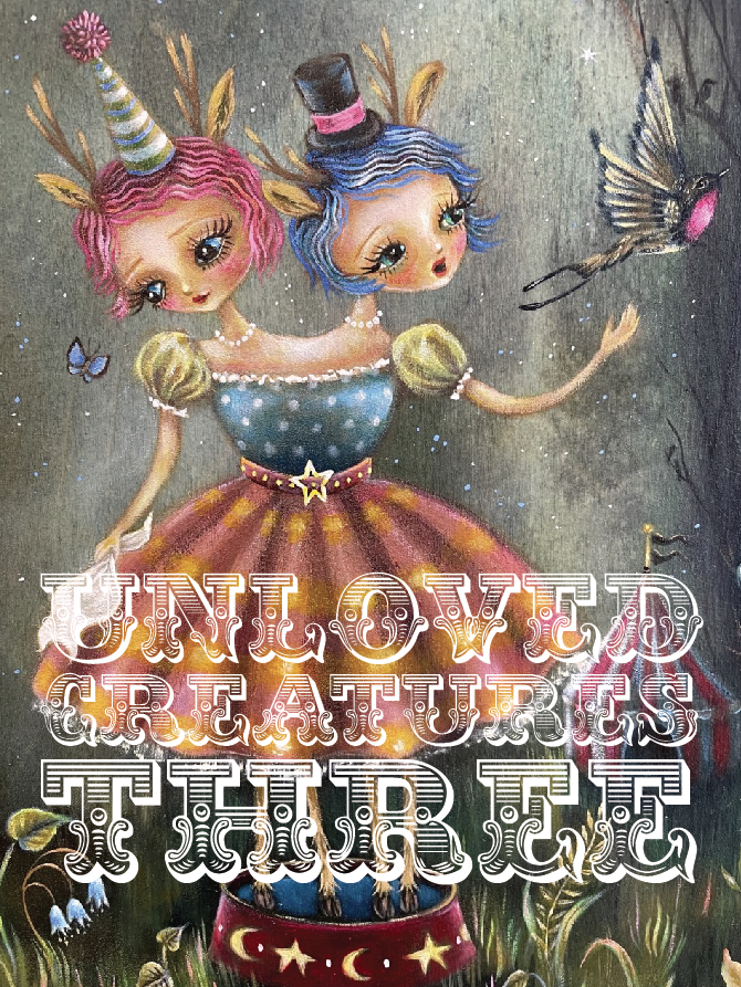The Unloved Creatures show is spilling over with mind melting, sugary goodness. Strap in and prepare for an adventure for your eyeballs. The Unloved Creatures show will take you to surreal worlds that can only exist in the imaginations of artists. From the happiest Nature Gods & alien animals to dimly lit alternate universes to melancholic carnivals, this show will take you to places full of inspiration that perfectly mix beauty and darkness.
